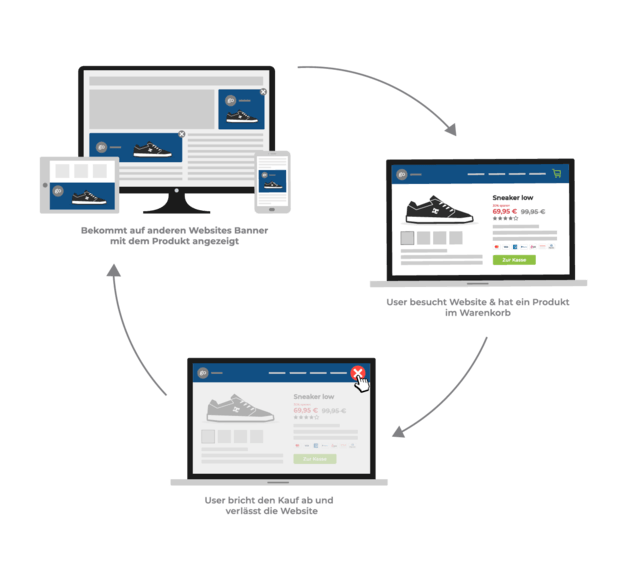 Mit dem Google Display Netzwerk und einer erprobten Remarketing-Strategie kannst du auch den Rest deiner relevanten Besucher kosteneffizient nachbearbeiten. Verwandle Warenkorbabbrecher und User, die sich mehrere deiner Seiten angesehen haben, aber dennoch nicht konvertiert haben, zu wiederkehrenden Nutzern, die wiederum mit höherer Wahrscheinlichkeit konvertieren werden.